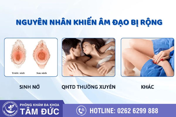 Sau khi sinh con, âm đạo của người phụ nữ sẽ bị giãn ra do trong quá trình sinh, âm đạo sẽ co giãn để tạo thành lực đẩy thai nhi ra bên ngoài, điều đó dẫn đến việc vùng kín bị giãn rộng.