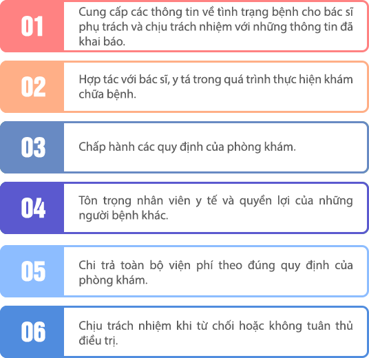 100% chi phí thăm khám và điều trị tại phòng khám đều được công khai minh bạch. Bệnh nhân có quyền lựa chọn phương pháp điều trị mà mình mong muốn sau khi nghe bác sĩ tư vấn.