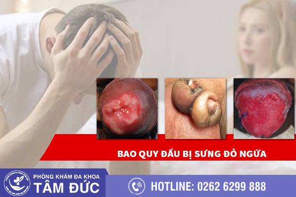 ⇒ Hẹp bao quy đầu: Đau rát dương vật xảy ra khi bao quy đầu chật hẹp. Có trường hợp, bao quy đầu bị sưng phồng lên như cục mỡ gây đau nhức dương vật gọi là nghẹt bao quy đầu.